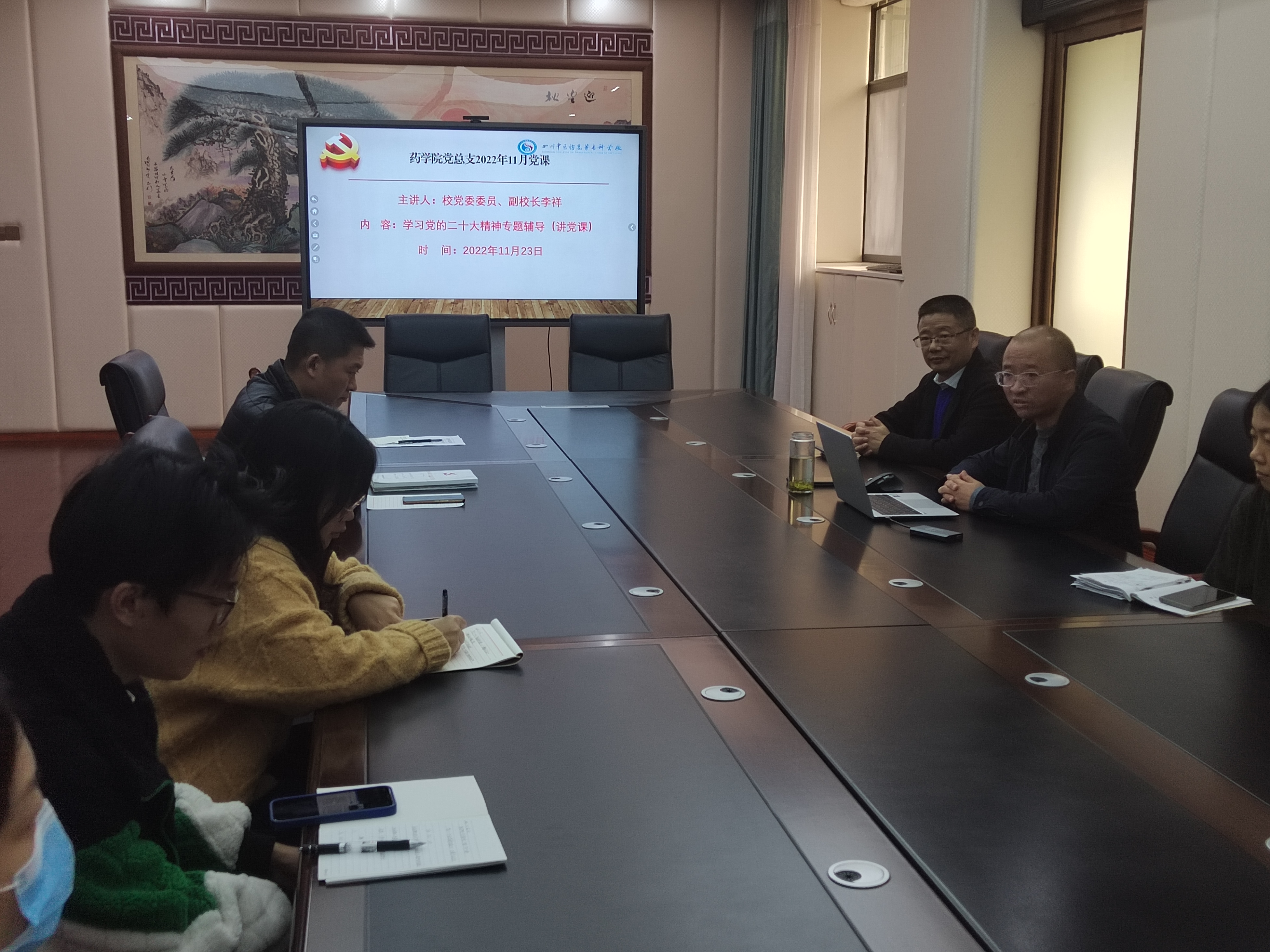 为持续推进深入学习贯彻党的二十大精神,药学院党总支于11月23日中午在南区综合楼三楼新会议室开展了十一月讲党课活动。