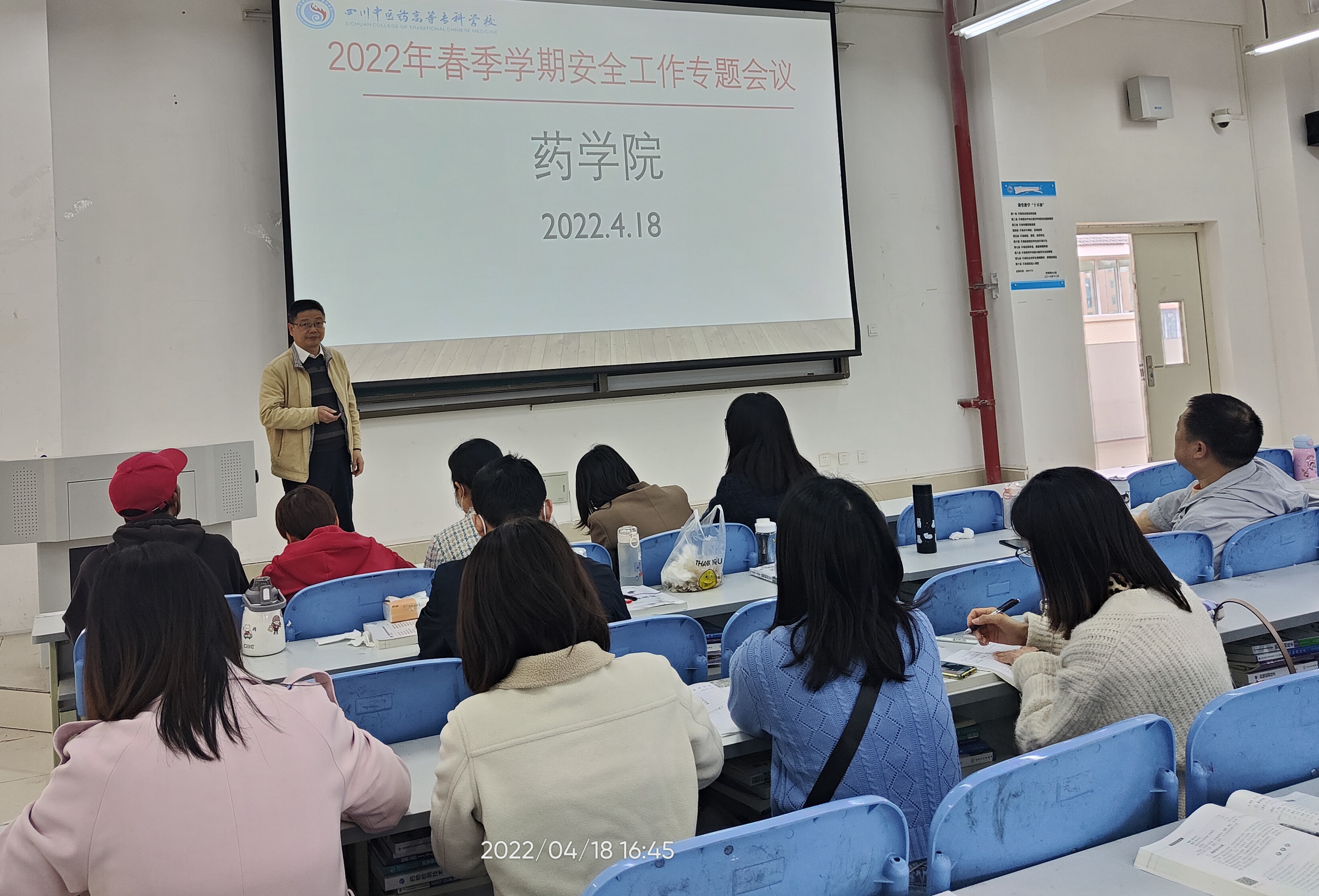 4月18日下午,药学院在2-4-2教室召开了2022年春季学期第一次安全工作专题会议,全体辅导老师及部分教师参加了本次会议。