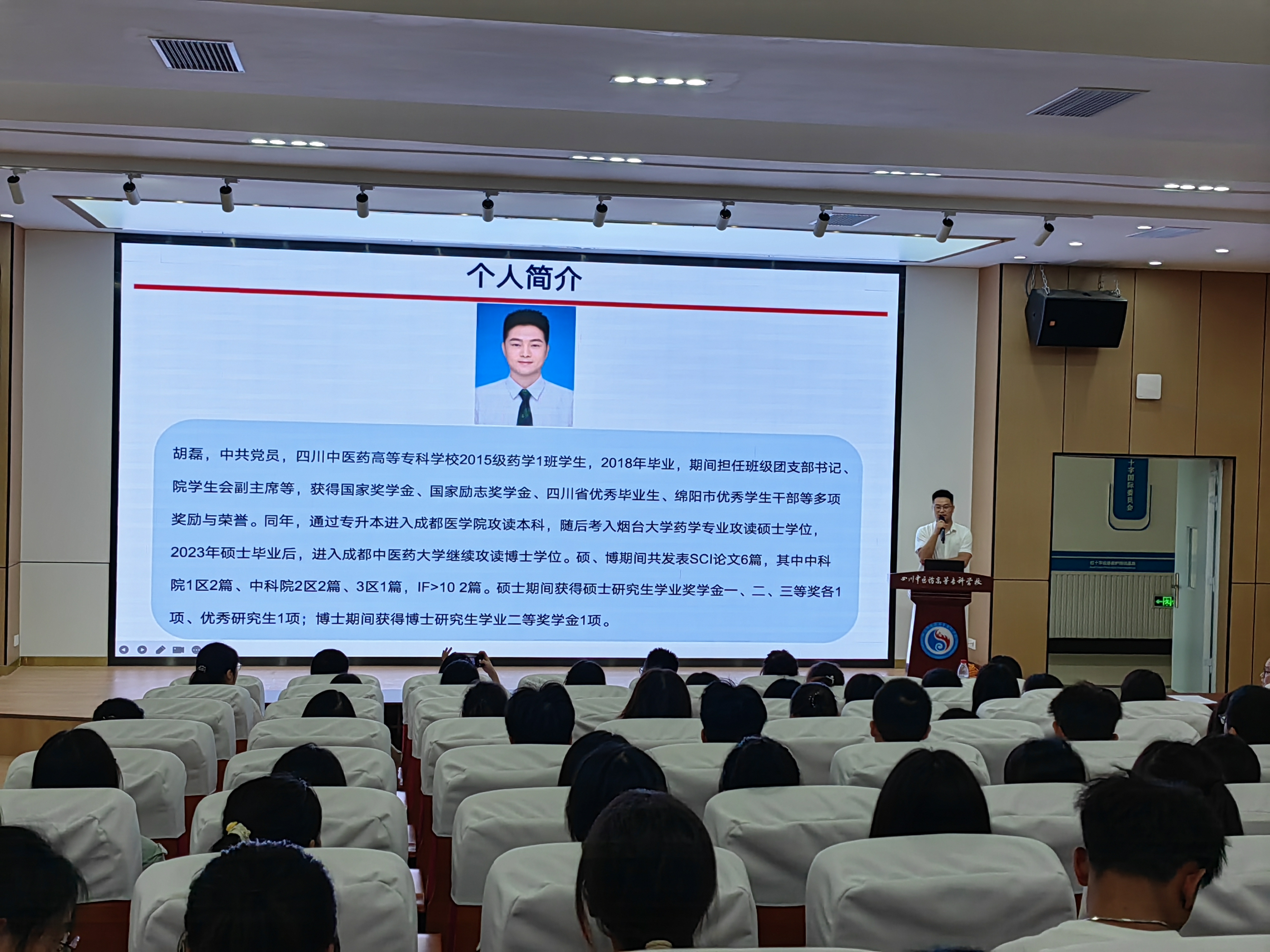 为进一步提升学生职业规划意识,传播生涯成长理念,结合学生实际和发展期待,为同学提供精准分类指导,提升就业竞争力。我院依托“百草香”辅导员工作室建设,坚持以“成长+就业”为核心定位,围绕“精准指导,职引未来”主题,发挥朋辈引领作用。2024年9月10日,我院组织开展“我与学长学姐面对面”分享交流活动,特邀现成都中医药大学中药分析专业博士二年级在读学生胡磊(原2015级药学1班学生)、阿斯利康医药(成都)有限公司高级产品专员刘倩(原2015级中药班学生)等2名优秀校友返校,与2024级新生们面对面进行职业规划与学习经验交流,解答他们在学习、生活、职业规划等方面的疑惑。学院师生代表100余人参加分享交流会。