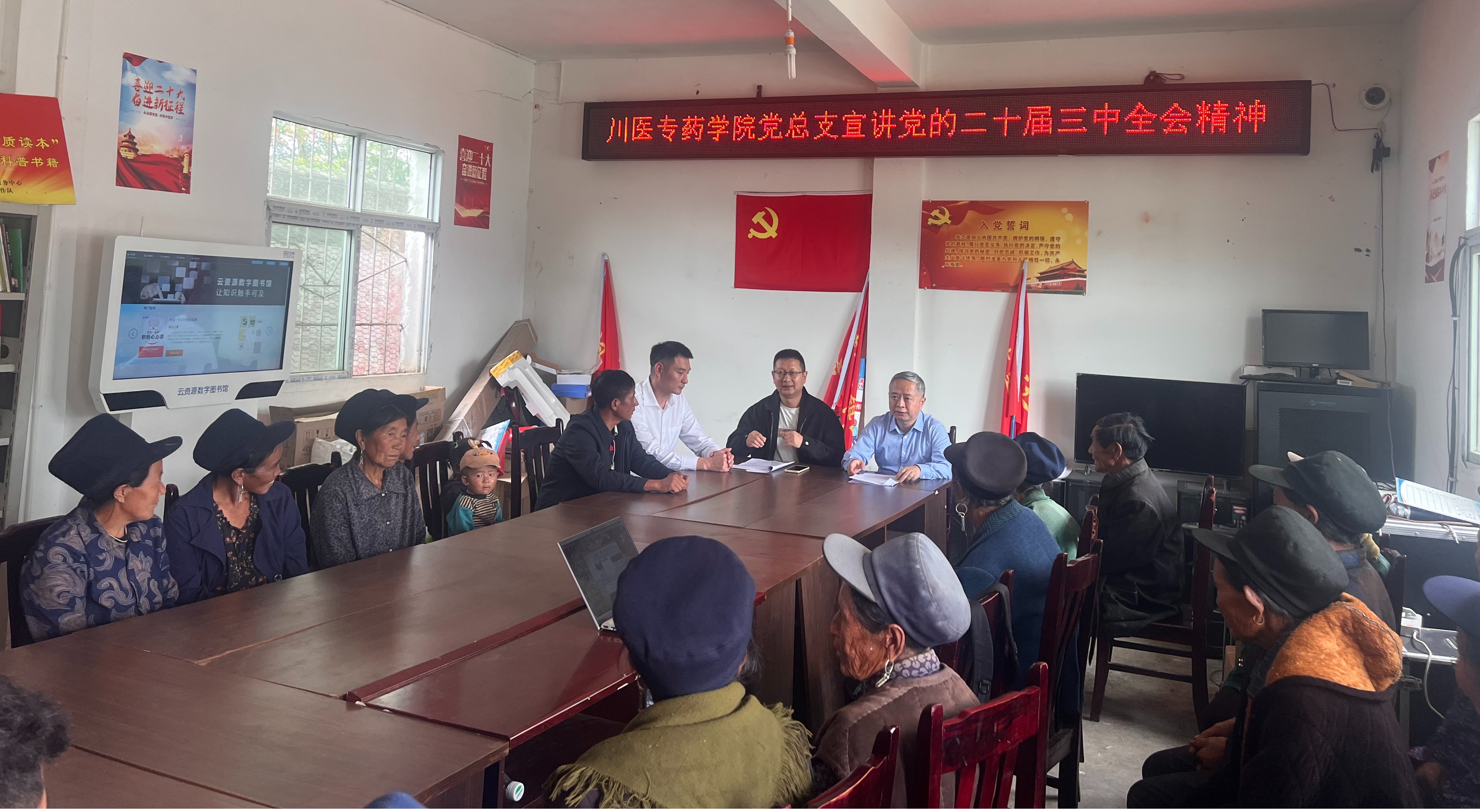 2024年9月26日,学校纪委书记李文虎和药学院党总支书记任植艺赴凉山州布拖县四且村和飞普村看望驻村干部及开展“党的二十届三中全会精神”专题宣讲会。会议在村委会进行,驻村队员、村组干部和村民代表参加。