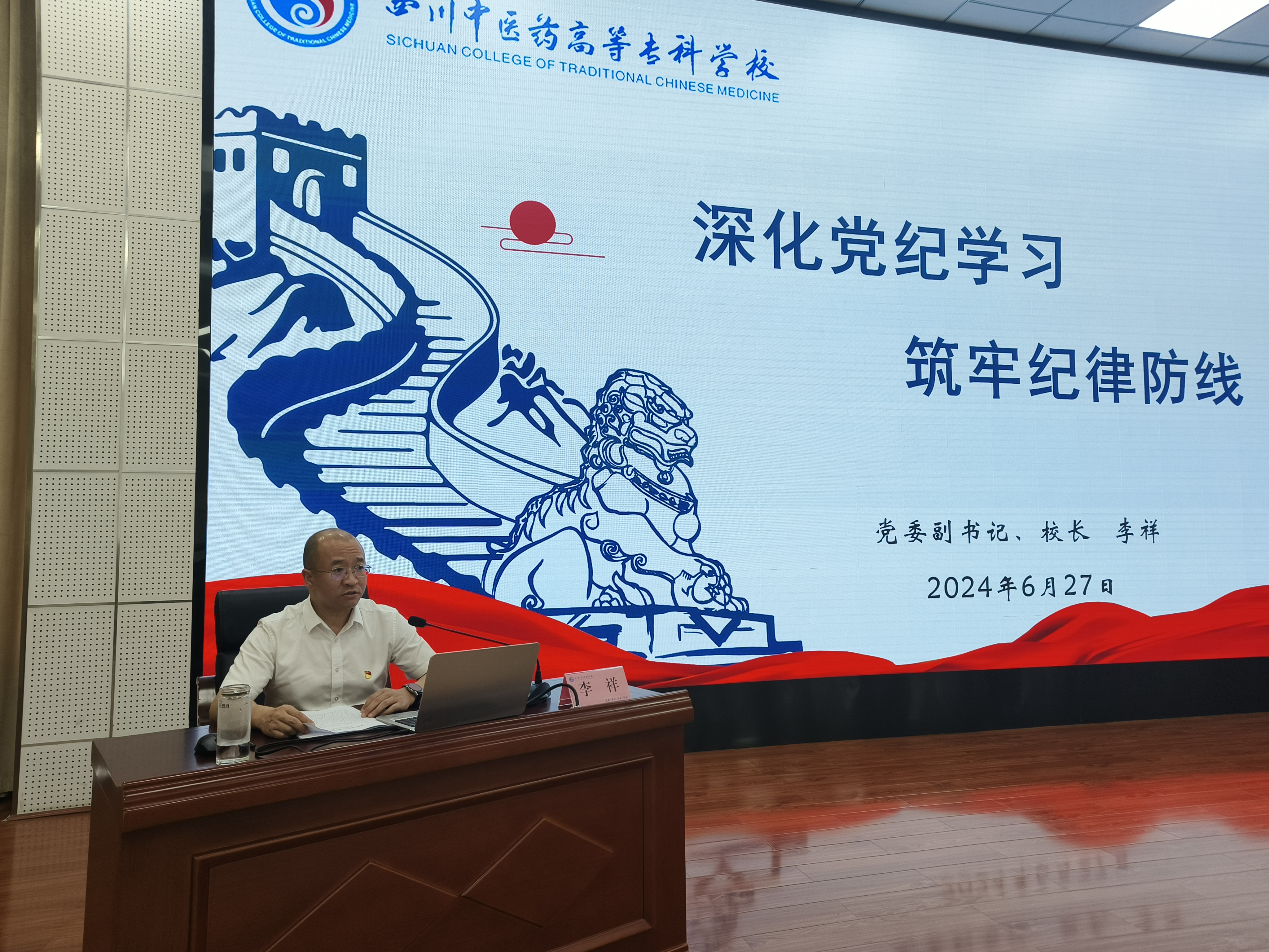 为推进党纪学习教育走深走实,切实增强教职工党员的纪律意识和规矩意识,进一步筑牢拒腐防变的思想防线,6月27日,校党委副书记、校长李祥以“深化党纪学习教育 筑牢纪律防线”为题,为我院及临床医学院全体教职工党员讲授党纪学习教育专题党课。