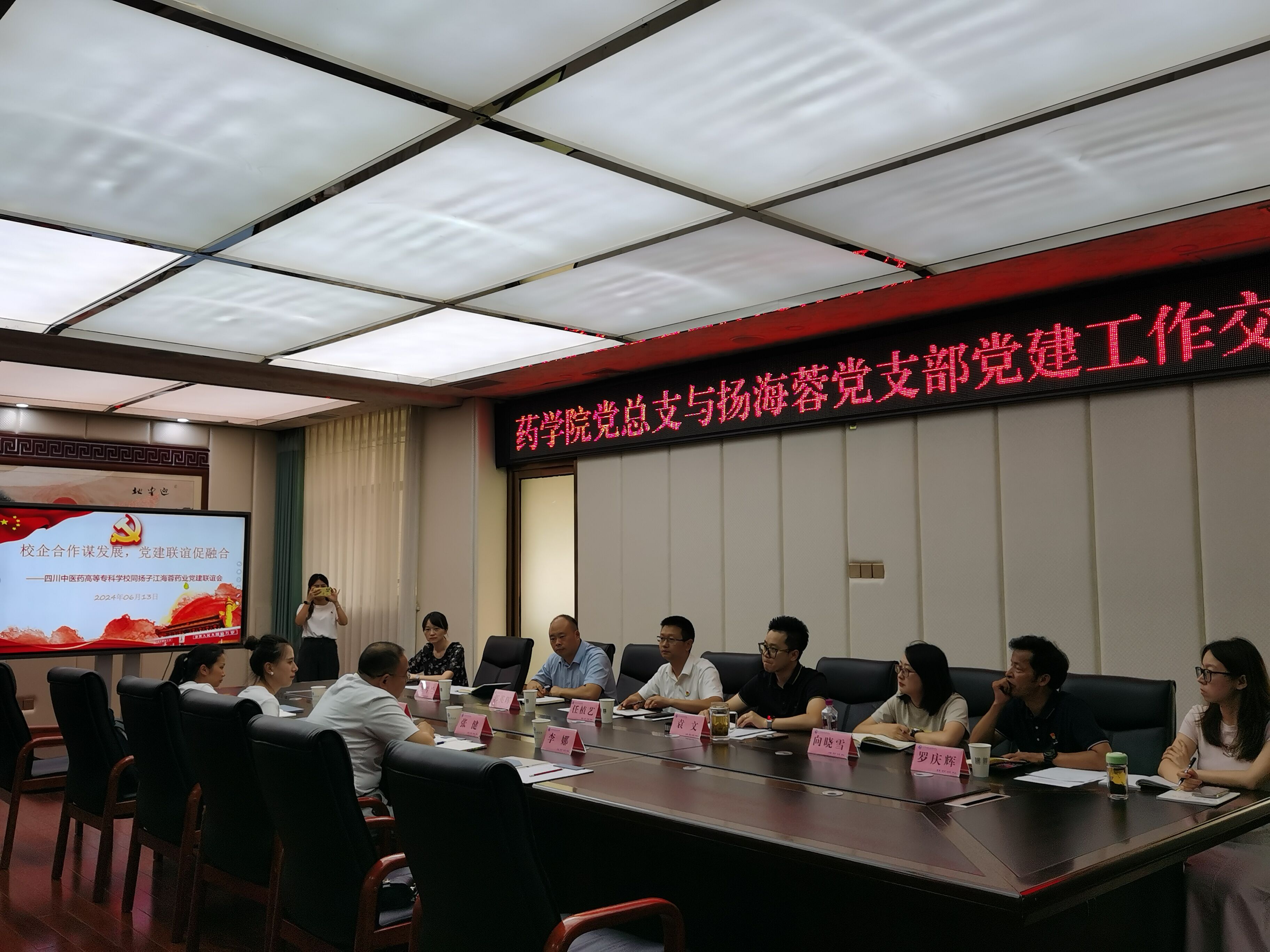 6月13日,药学院党总支与扬子江药业集团四川海蓉药业有限公司党支部在学校南区新会议室开展党建工作交流会。公司副总经理张健,人力资源处处长张静,QC实验室主管任敏,学校党委学生工作部部长郭英辉,学院党政领导,支部书记、支委参会,会议由学院党总支书记任植艺主持。