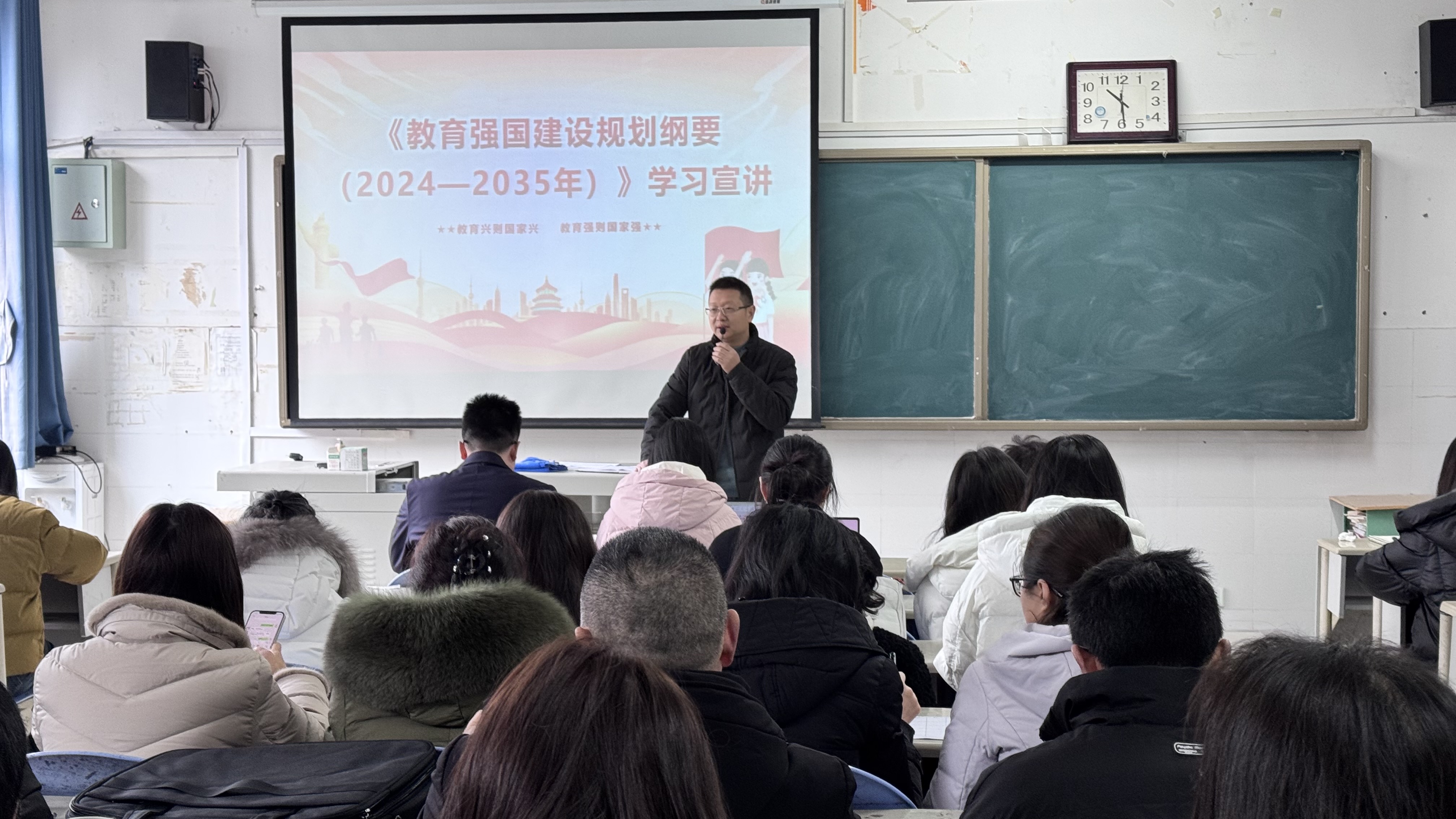会上,任植艺书记指出,《纲要》提出实施教育家精神铸魂强师行动,学院要知行合一,贯彻到底,推动教育家精神融入教师培养培训全过程,贯穿课堂教学、科学研究、社会实践各环节,构建日常浸润、项目赋能、平台支撑的教师发展良好生态。要求全体教职员工要坚持正确政治方向,增强“四个意识”、坚定“四个自信”、做到“两个维护”;坚守教育教学职责,不得敷衍塞责或学术不端;关爱学生成长,尊重学生人格,不得出现歧视或体罚学生现象;遵守学术道德,恪守学术规范,坚决杜绝学术造假;做好教书育人工作,以德施教,为人师表,切实肩负起培养时代新人的历史使命。