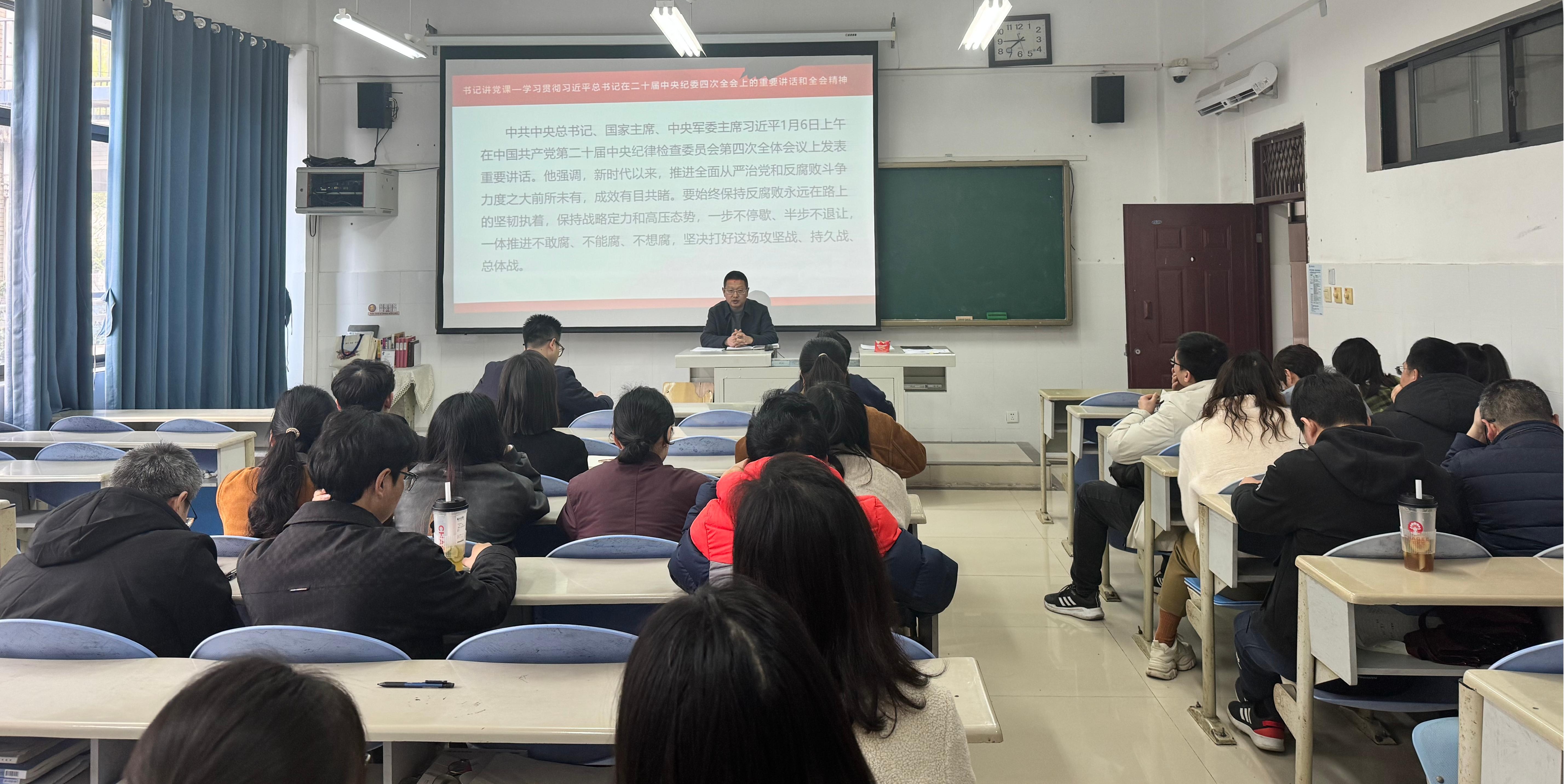 2025年3月13日,我院党总支书记任植艺以“学习贯彻习近平总书记在二十届中央纪委四次全会上的重要讲话和全会精神”为主题,组织全体党员召开第一季度专题党课。