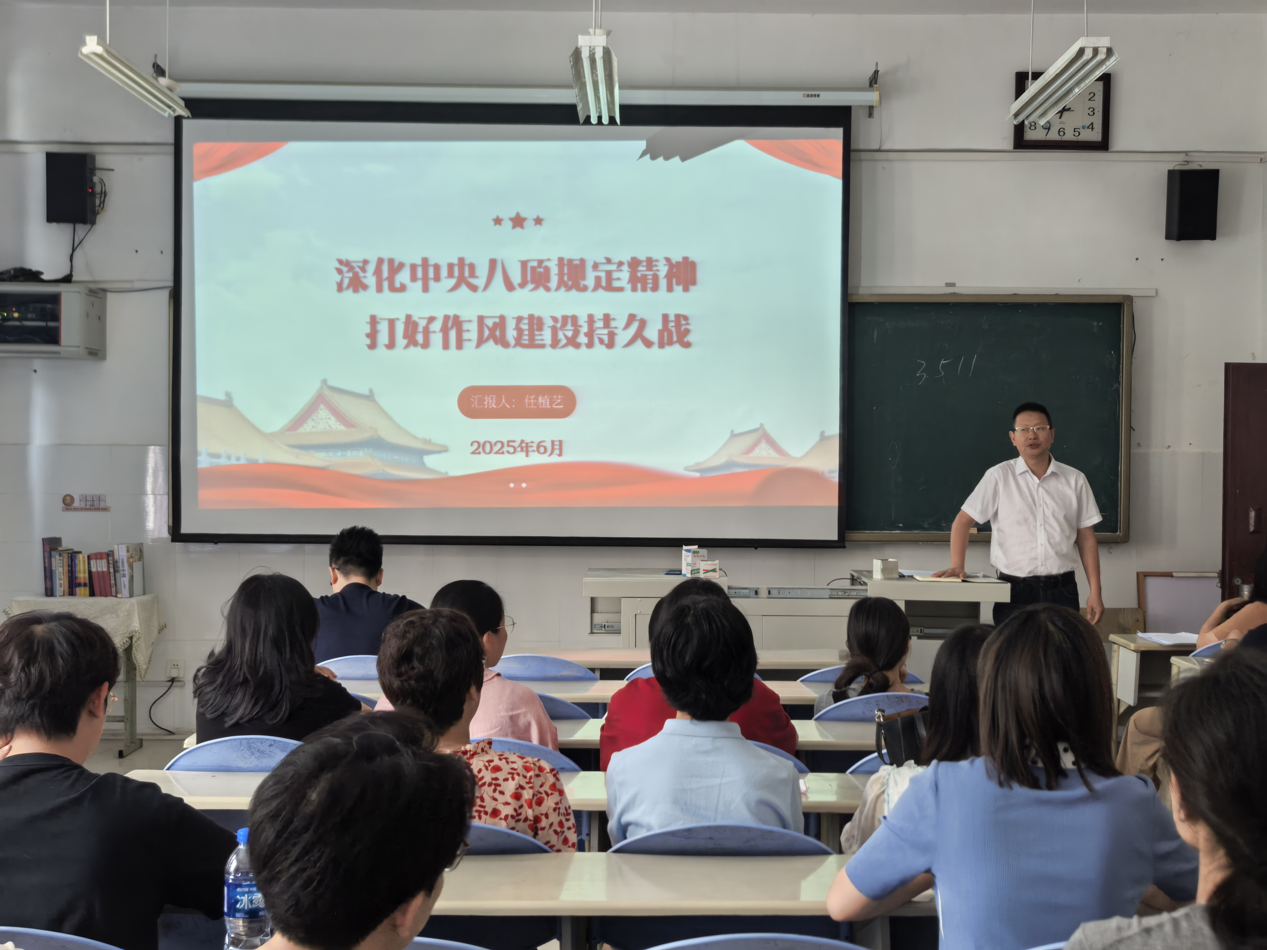 为深入贯彻落实中央八项规定精神,系统推进教职工党员纪律教育,靶向发力推动作风建设向纵深发展,2025年6月26日,我院党总支书记任植艺以“深化中央八项规定精神 打好作风建设持久战”为题,为学院全体党员作专题党课报告。
